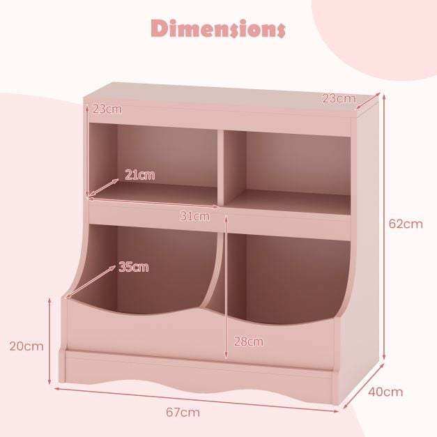 ● Say Goodbye to Mess: Designed with a spacious top shelf and 4 open compartments, this kids toy storage organizer provides large storage space for toys, books, balls, decorations and more. The intuitive arrangement helps kids to develop organizing habits after play.