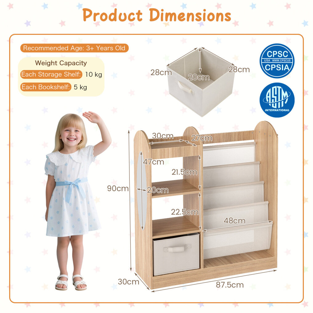 ● Removable Fabric Drawer: The bottom fabric drawer on this kids bookshelf is easy to pull out and fold without tools, providing simple and versatile storage for toys, books, and other nursery essentials.