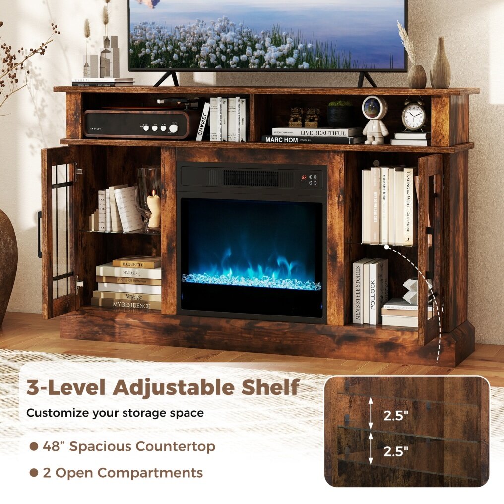 ● Efficient and Safe Heating: This fireplace TV stand allows you to stay cozy and warm with a powerful 4777 BTU output, ideal for heating areas up to 400 sq.ft. Set your preferred temperature between 62℉ and 82℉ while the built-in thermostat maintains your comfort zone. With overheat protection, you can relax knowing your heating is efficient and safe. The remote control is included.