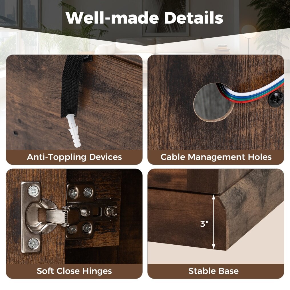 ● Captivating RGB LED Lights: This LED light entertainment center customizes your ambiance with 10 brightness levels, 4 rhythm modes, and adjustable flash and speed settings. You can control it all effortlessly from up to 66 ft away with the included remote or via a smart app.