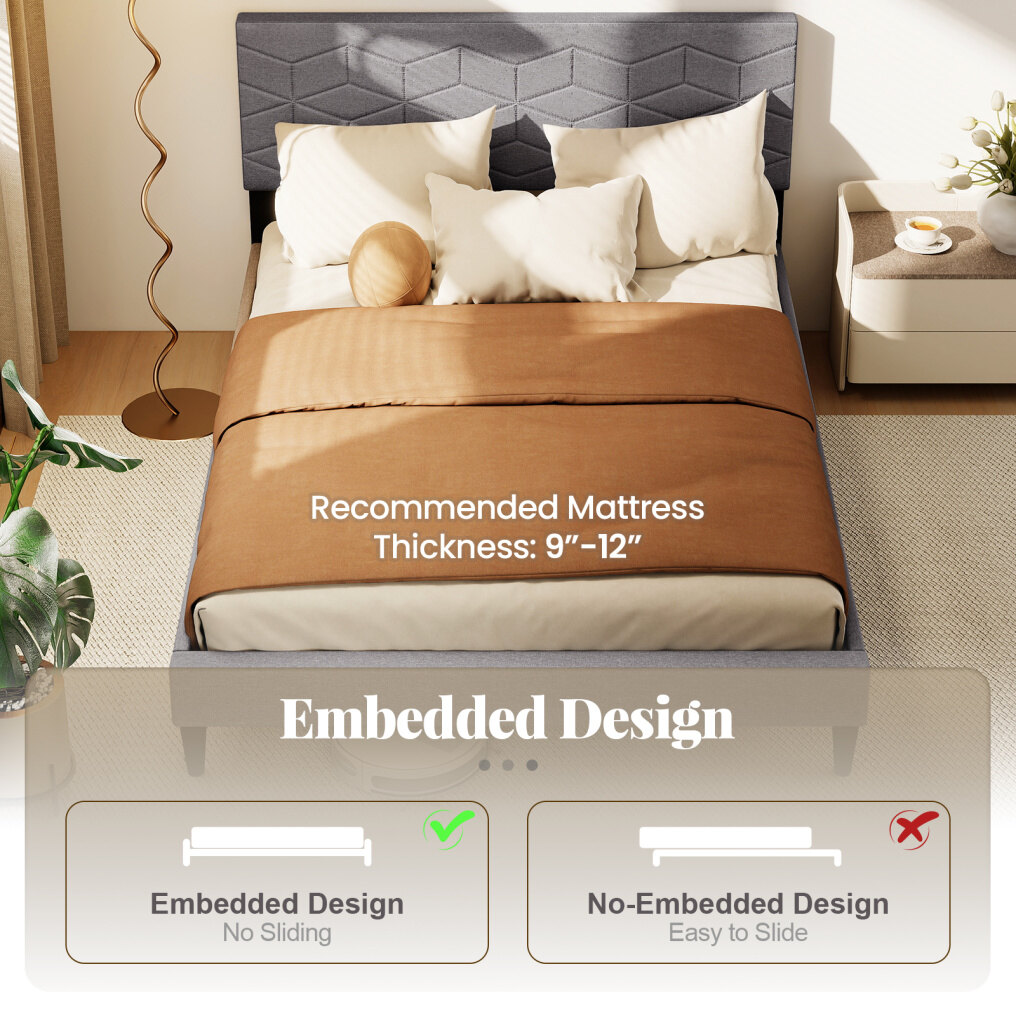 mdf, engineered wood, lvl slats, plastic, foam, linen fabric |