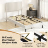 ● No Box Spring Required: The slatted bed frame offers a sturdy and reliable base for your mattress without the need for a box spring. The mute bar pressed on the metal beam prevents noise or squeaky, ensuring a restful night's sleep.