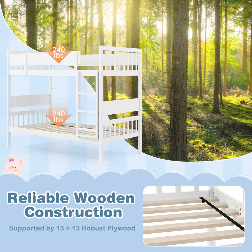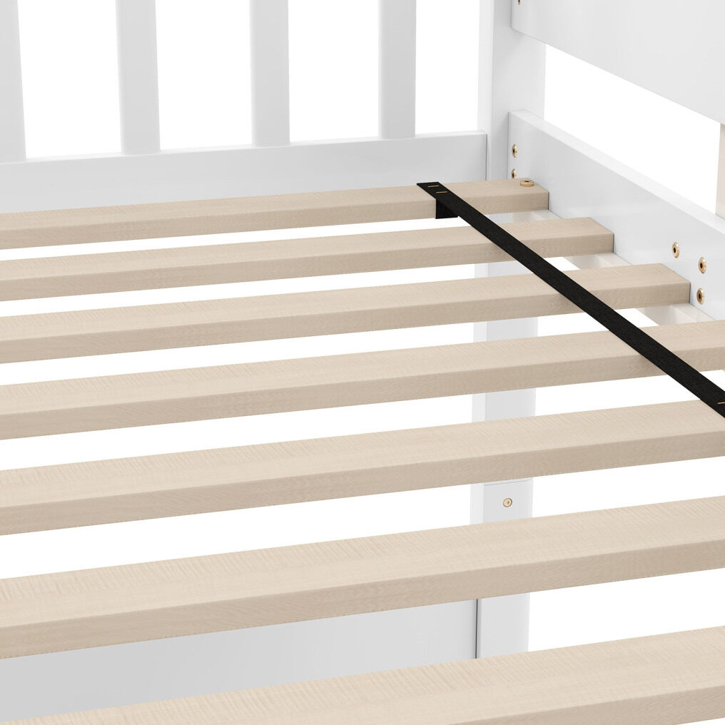 ● Reliable Wooden Construction: Built from a solid wood frame, this twin size bunk bed provides stability and durability. Moreover, supported by 13 + 13 robust plywood slats, it offers a reliable mattress base without the need for a box spring.