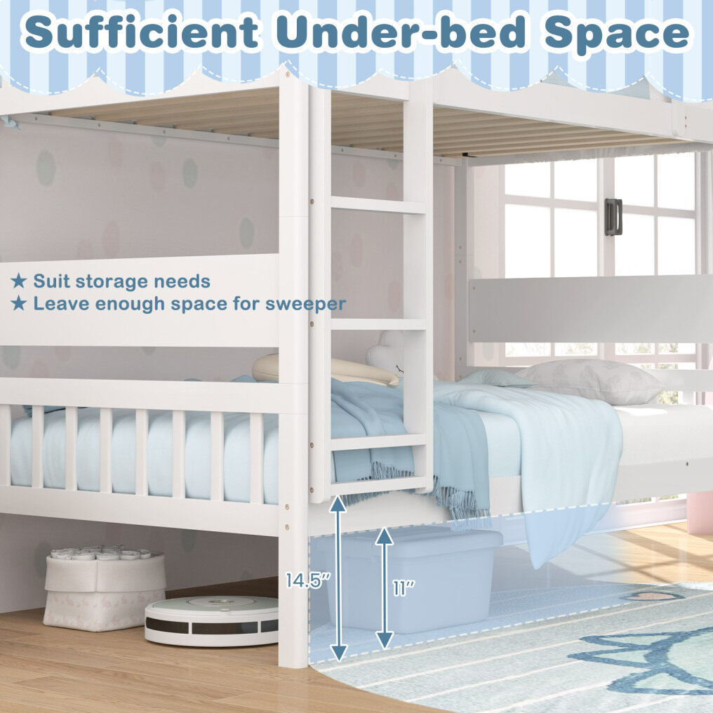 ● Maximize Storage and Cleaning: With 11 inches of under-bed storage space, this convertible bunk bed provides plenty of room for storing toys, bedding, and clothes. The generous clearance makes floor cleaning easier.