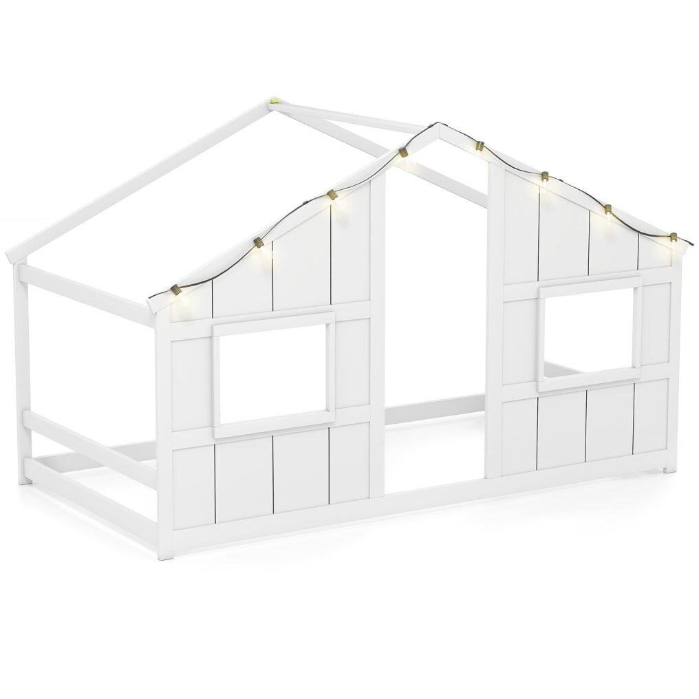 ● LED Light Strip: This kids' floor bed features a warm-glow LED light strip with 8 bulb lights, creating a cozy atmosphere for bedtime. The soft lighting enhances the playful design of the house bed, making it perfect for both sleep and play.