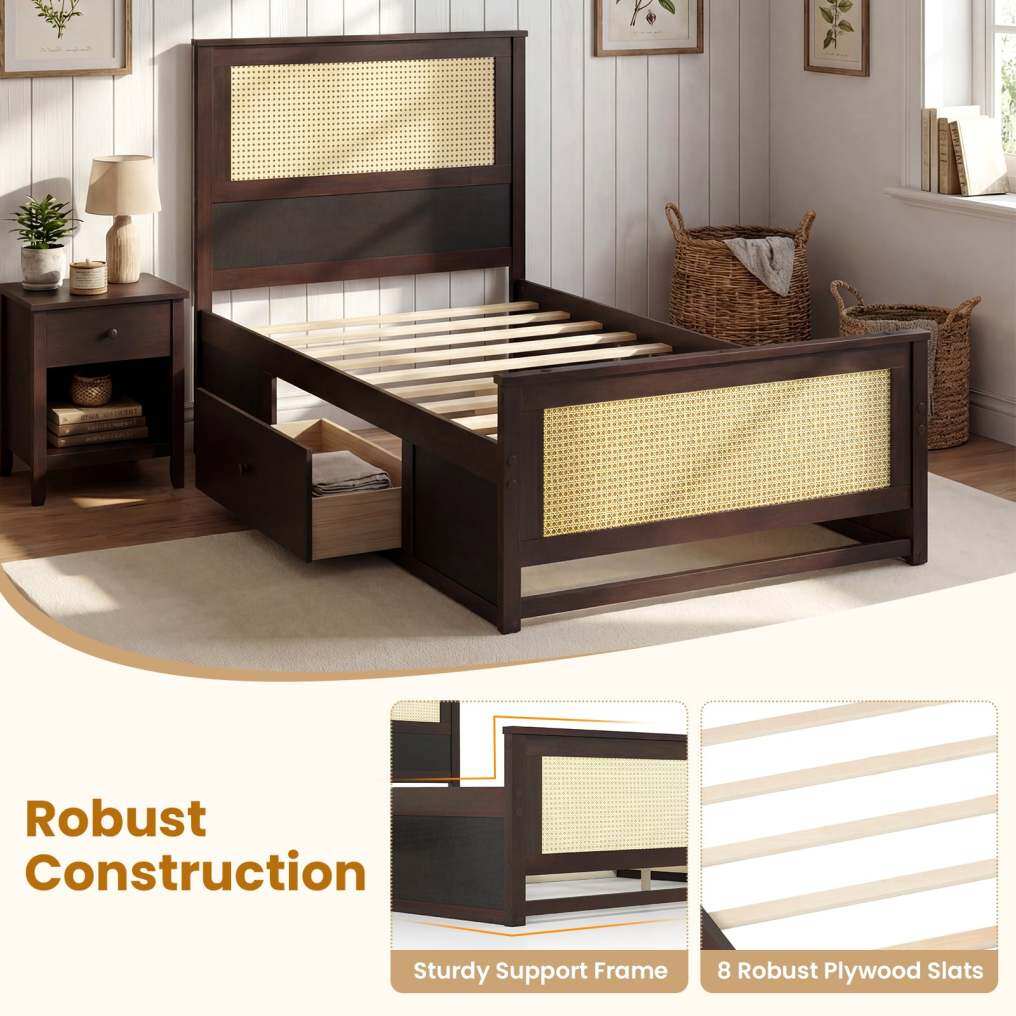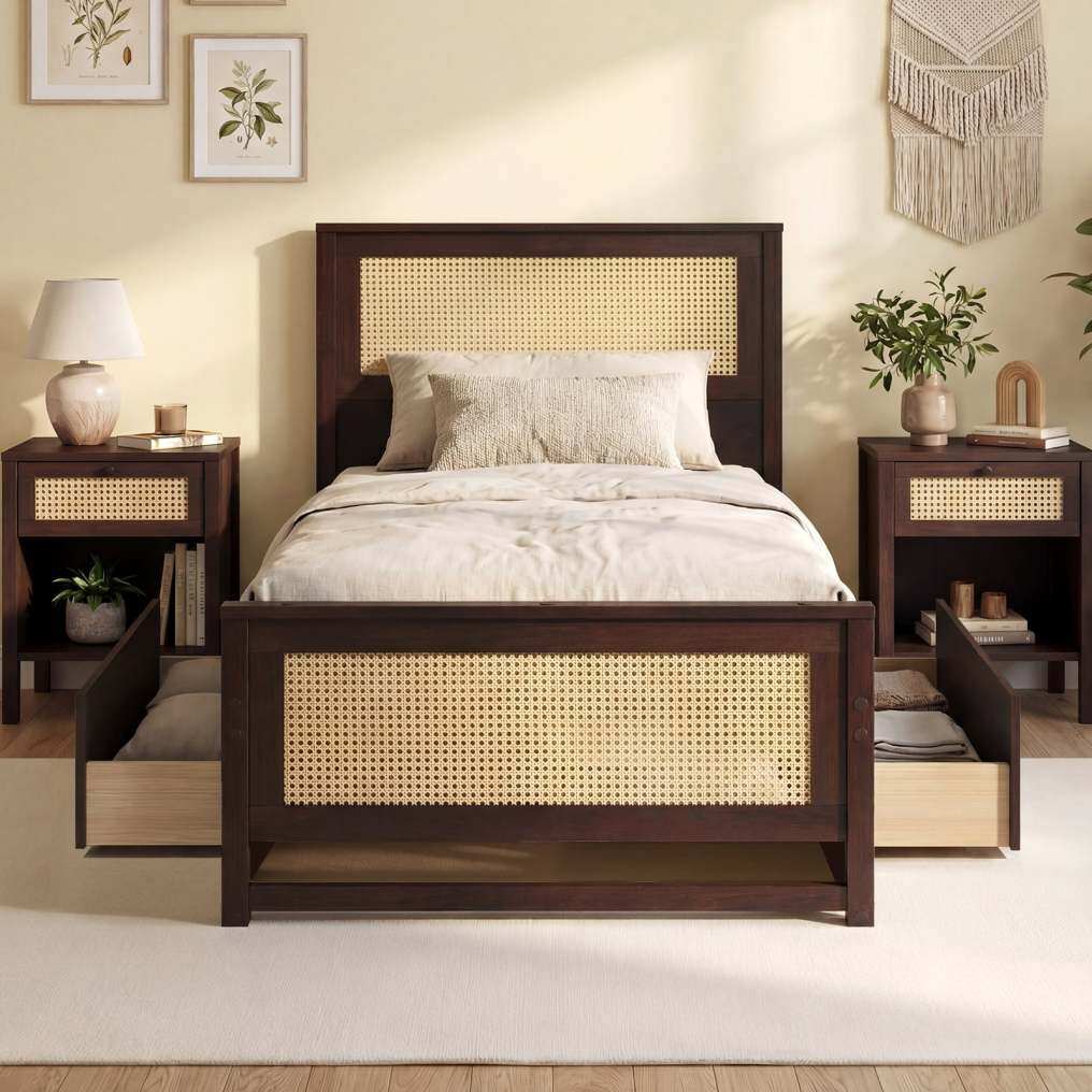 Twin Size Rattan Bed Frame with Storage Drawers-Coffee Sourcing Wholesale Supplier/Distributor | B2B Marketplace