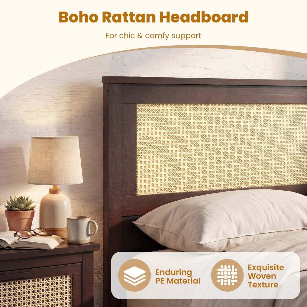 ● Intricate Rattan Woven Accent: The rattan accents on the headboard and footboard offer a breathable, light-filled aesthetic that elevates your space. The woven texture and natural hue make the bed frame an unmatched centerpiece of your bedroom .