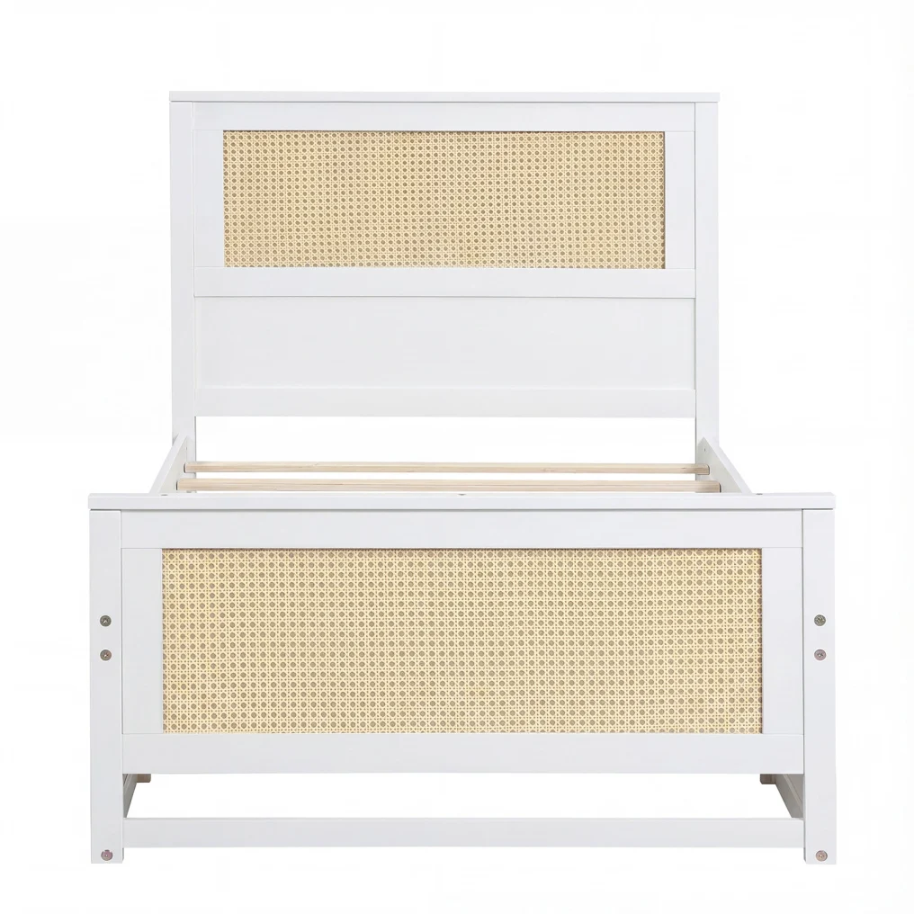 ● Intricate Rattan Woven Accent: The rattan accents on the headboard and footboard offer a breathable, light-filled aesthetic that elevates your space. The woven texture and natural hue make the bed frame an unmatched centerpiece of your bedroom .