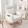 Thickened headrest, overstuffed backrest, and curved armrests ensure comfortable support. The soft Chenille fabric and sponge take its seating comfort to a higher level. You can also rock to elevate relaxation. You can sit on the chair to relax in the living room, bedroom, studio, and more. The rocking armchair has 2 magazine pockets to place your items. Additionally, the anti-crack rubber wood frame makes it strong and sturdy, which will accompany you for years.