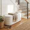 ● Sleek and Stylish Appeal: Featuring an oval shape and modern aesthetic, this upholstered ottoman bench adds a bright and elegant touch to your living space. Its simple yet refined design complements a variety of decoration styles effortlessly.