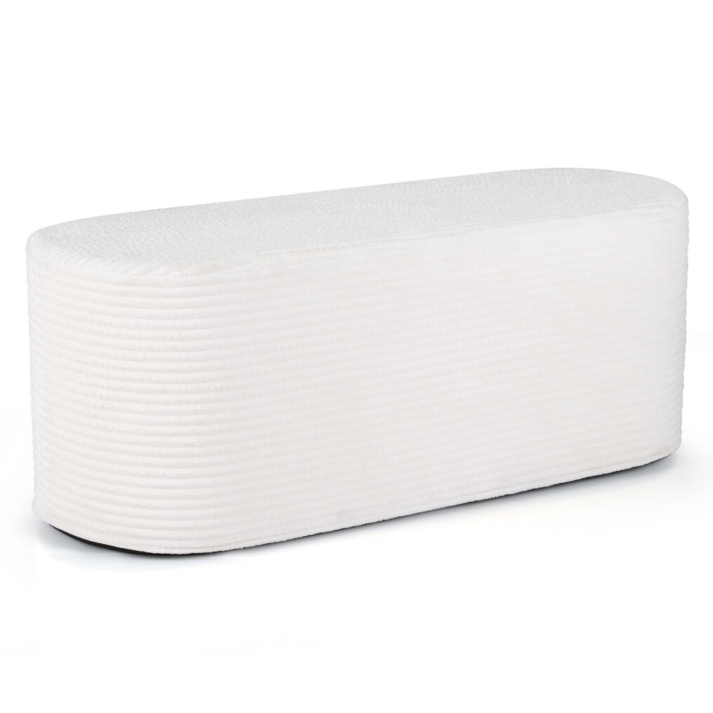 ● Sleek and Stylish Appeal: Featuring an oval shape and modern aesthetic, this upholstered ottoman bench adds a bright and elegant touch to your living space. Its simple yet refined design complements a variety of decoration styles effortlessly.