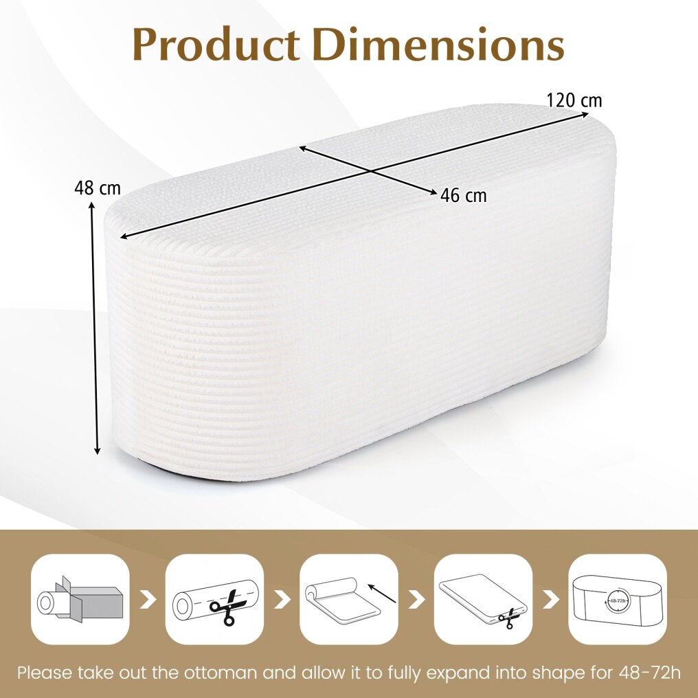 ● No Assembly Needed: This ottoman comes compressed. Just unroll it flat and give it 48-72 hours to fully expand to its original shape. No assembly is required, making it quick and easy to add comfort and style to your space.