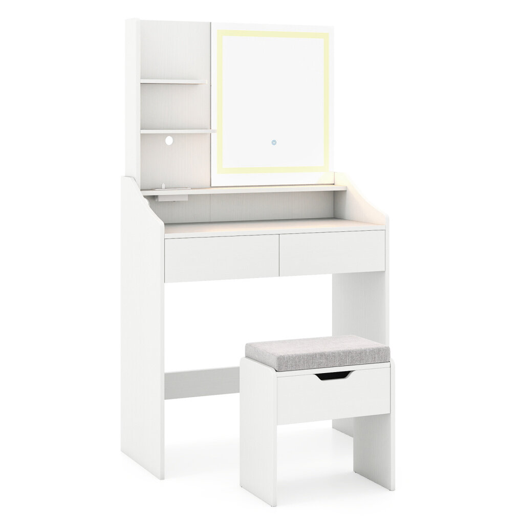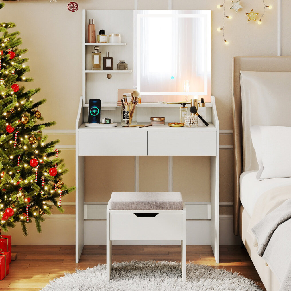● Built-in Charging Station: Equipped with 2 AC outlets, a USB port, and a Type-C port, this makeup table integrated with power outlets allows you to effortlessly charge your phone, tablet, or beauty tools while creating your perfect look each day.