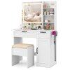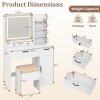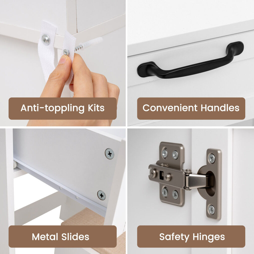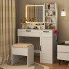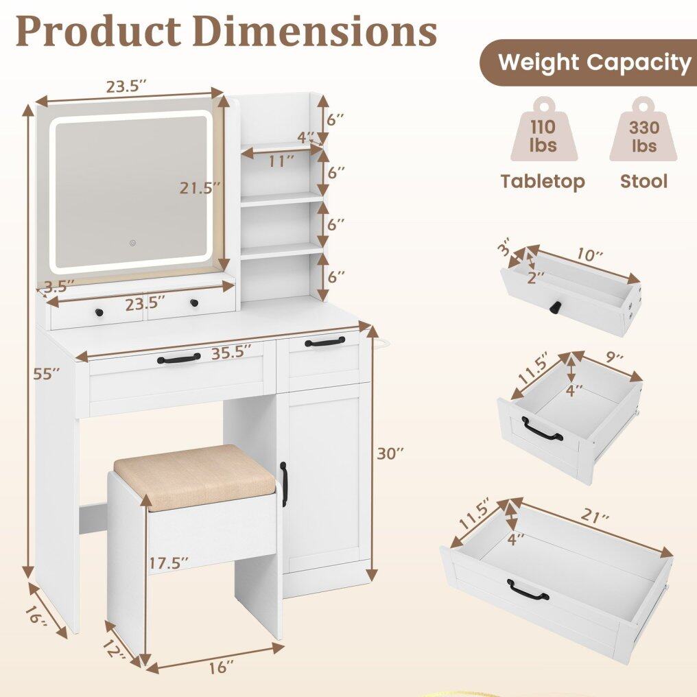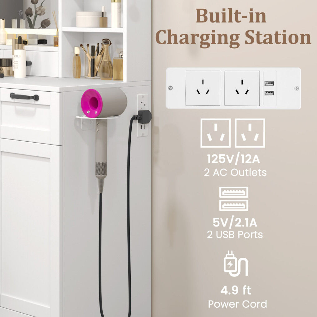 ● Abundant Storage Space: There are 4 open shelves, 2 small drawers, 2 sliding drawers, and 1 single-door cabinet to display or hide your cosmetics and beauty tools. The wide desktop keeps your daily essentials accessible. Additionally, the hair dryer rack is ideal for storing your hair dryer.