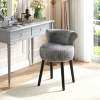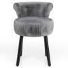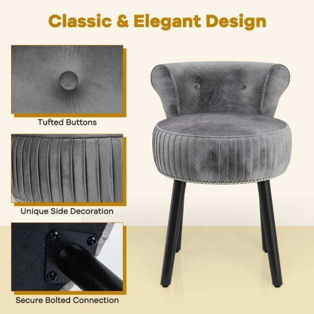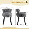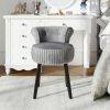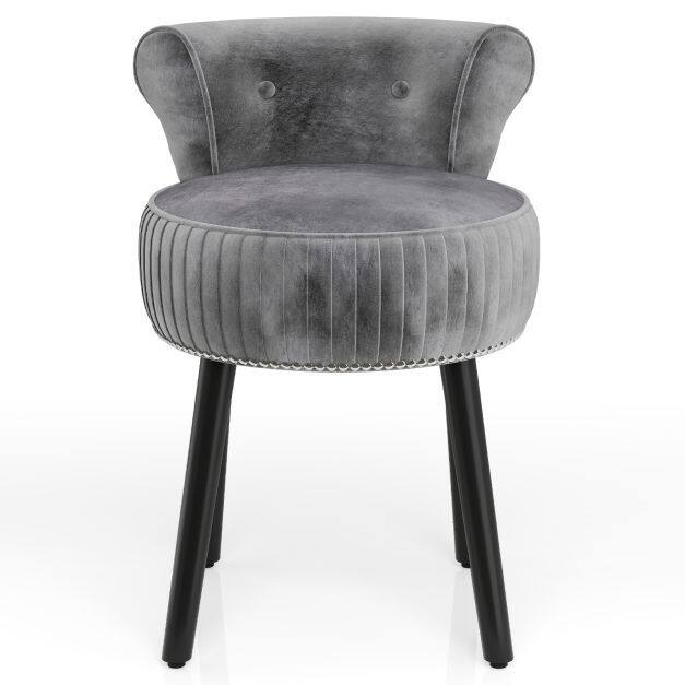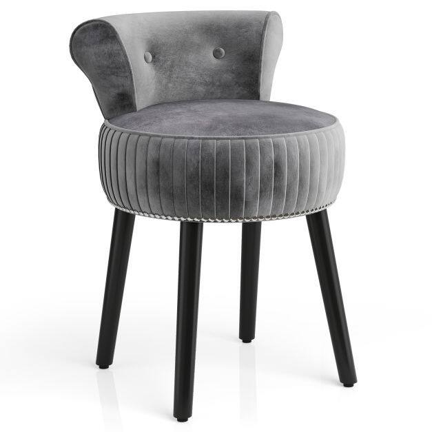 Velvet Vanity Chair with Back Upholstered Vanity Stool with Tufted Low Back and Solid Wood Legs-Gray