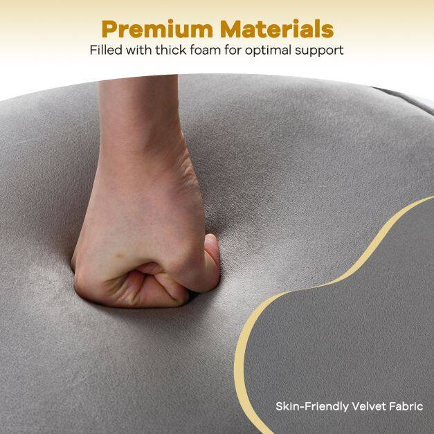 Robust Construction: Built with a solid wooden frame and sturdy rubber wood legs, this velvet vanity stool ensures lasting durability. Adjustable foot pads provide extra stability and prevent floor damage.