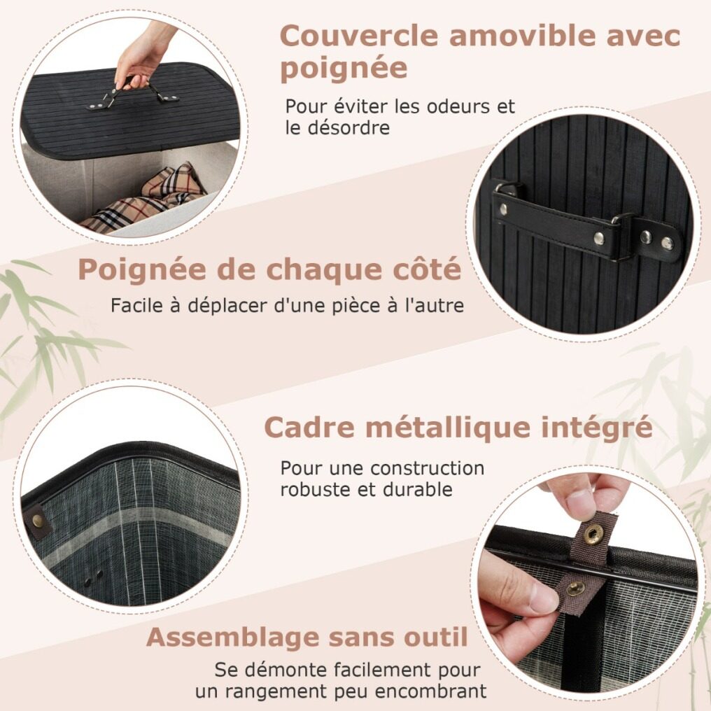 Removable Lid with Handle: The fully removable lid provides a large opening for adding or removing dirty clothes. Also, it keeps you away from odors and mess. And the lid is equipped with a handle for convenient opening and closing.