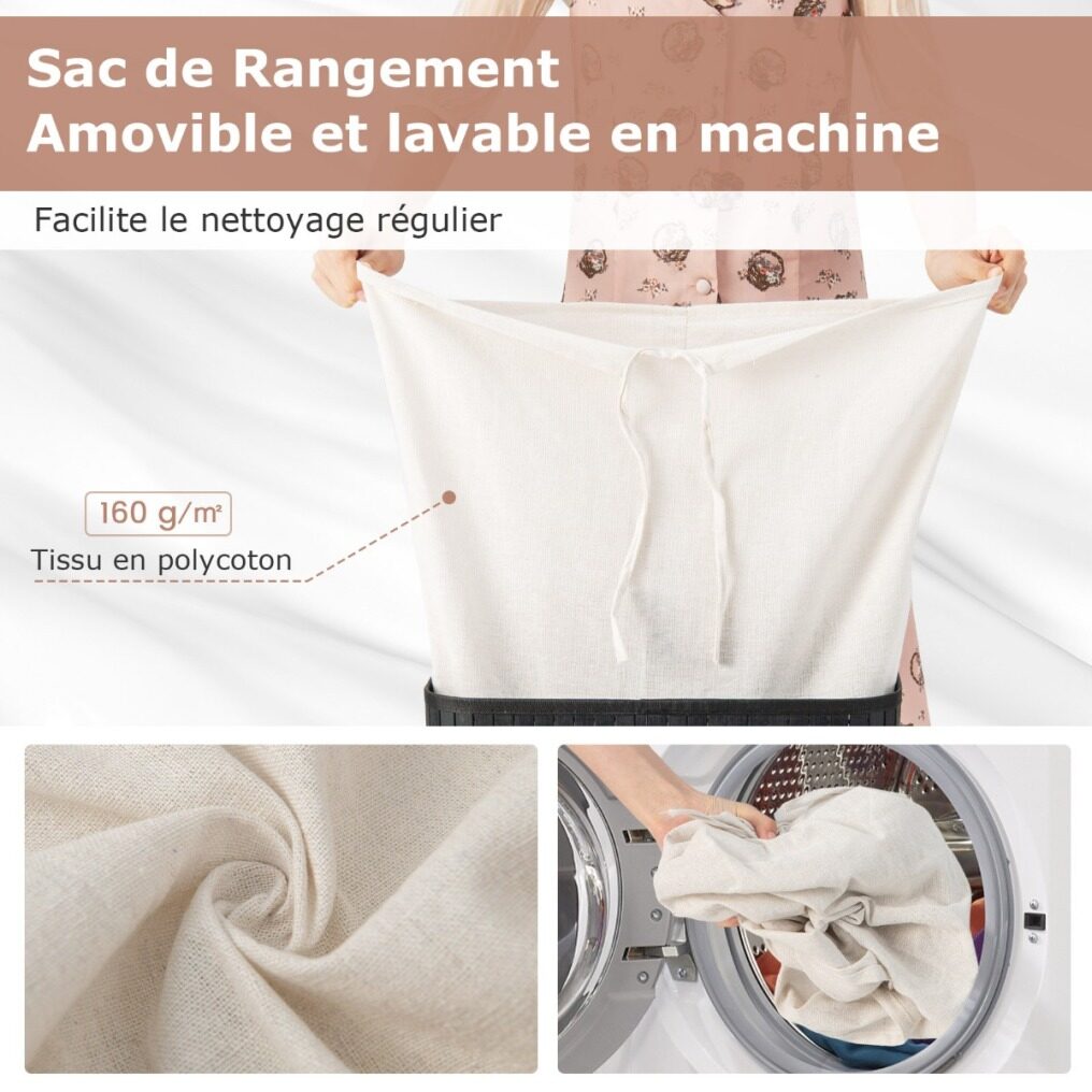 Large Capacity with Liner Bag: Measuring with large size, this laundry basket can easily hold up to 72L of clothing, blankets, towels and more. The package comes with a removable liner bag that is machine washable, which makes regular cleaning a breeze.