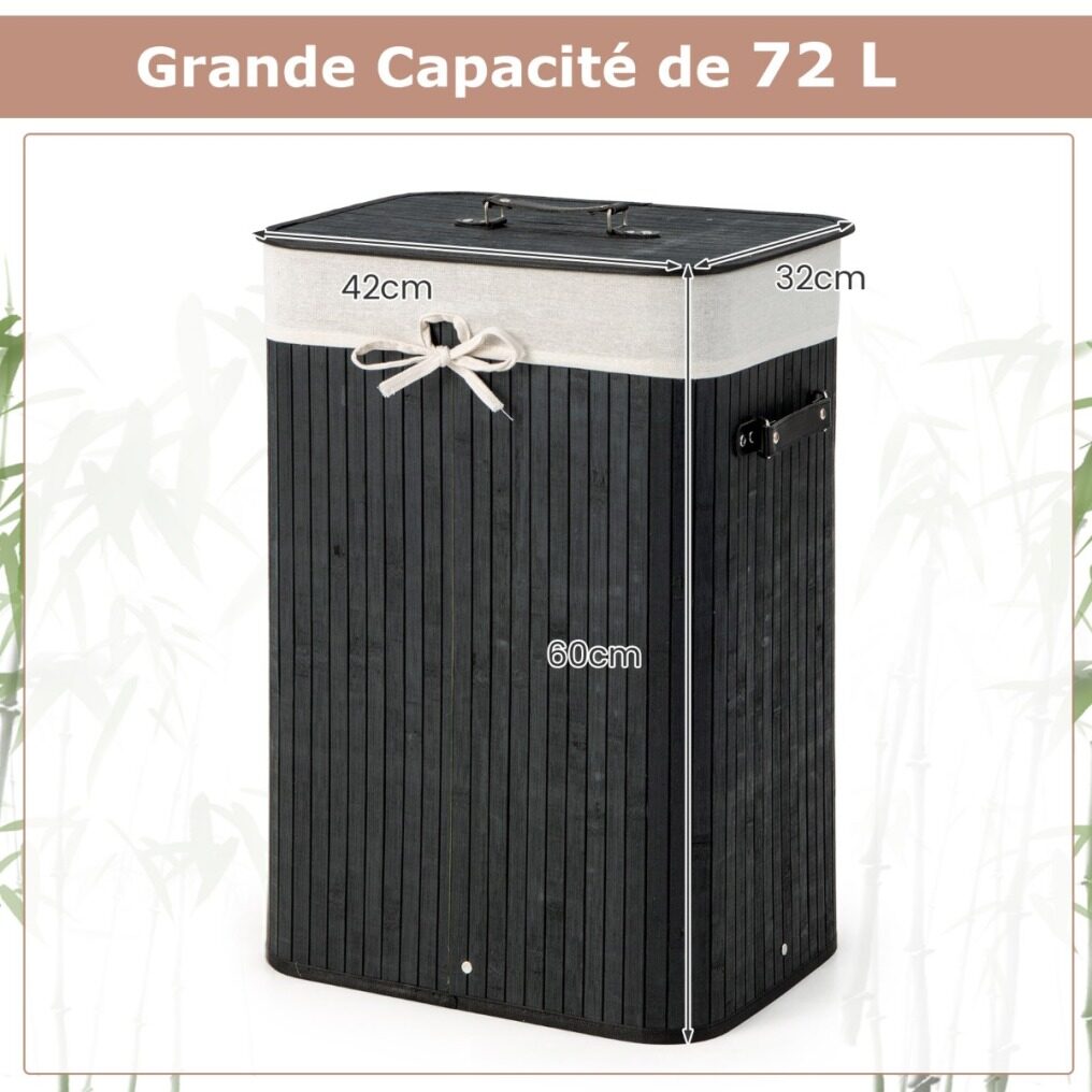 Compared to ordinary laundry hampers, this laundry hamper is made of natural bamboo, which is known as a renewable and environmentally friendly material. Also, the bamboo material also presents a textured appearance, which adds a touch of nature to your space. The 72L large capacity is enough to meet your daily needs, and the removable lid avoids odors from coming out. The included liner bag is machine washable. Besides, the movement between rooms is easy with handles, and this laundry basket is easy to disassemble for storage or transport. If you are looking for such a product, do not hesitate to buy it!