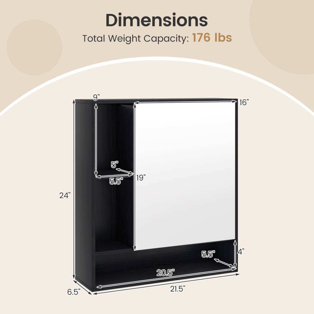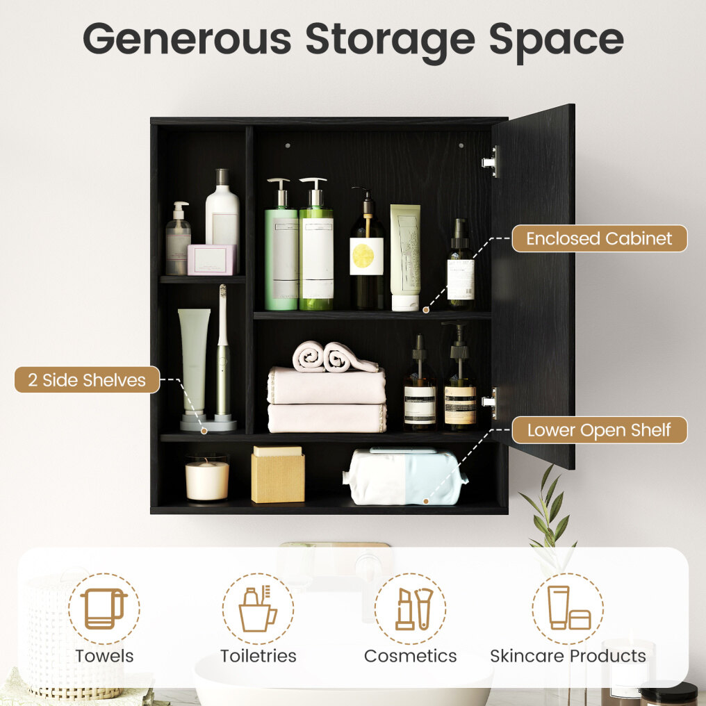 ● Generous Storage Space: This bathroom wall cabinet is equipped with an enclosed cabinet, 2 side shelves and a lower open shelf, offering ample storage space for your cosmetics, skincare products, towels, toiletries and more.