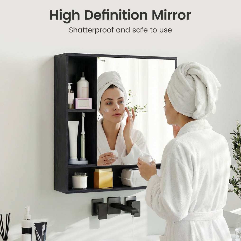 ● 2 in 1 Mirrored Cabinet: Featuring a high definition mirror combined with ample hidden storage, this space-saving wall mounted bathroom cabinet is a smart solution for small bathrooms. Plus, the mirror is shatterproof and safe to use.