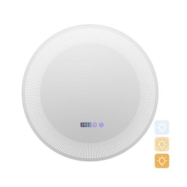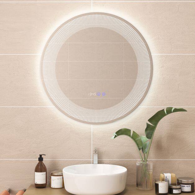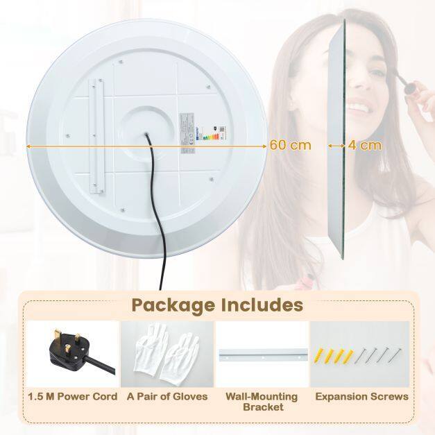 Stylish Wall-Mounting Mirror: The radial LED lights and high-definition mirror with a frameless design add a touch of sophistication, transforming your bathroom into a stylish oasis. The package includes accessories for wall mounting. There are 2 connection options: plug-in or hardwired to use the wall switch.