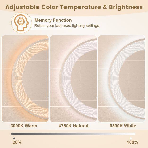 Adjustable Lighting Option: You can enjoy the flexibility of 3 color temperatures (3000K warm, 4750K natural, 6500K cool) with 20%-100% adjustable brightness settings. Plus, the built-in memory function will make it retain your last-used lighting settings.