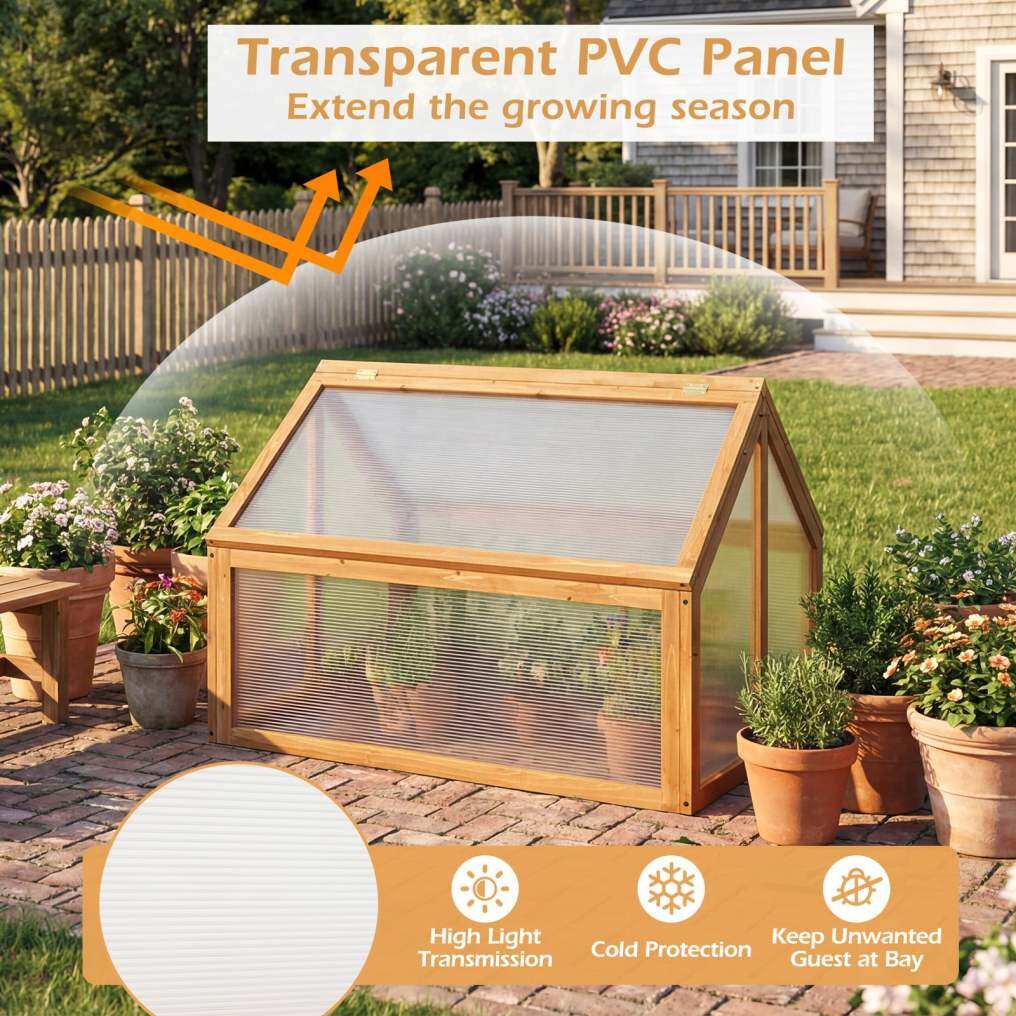 ● Customizable Roof Ventilation: Designed with dual easy-to-adjust roof vents, the cold frame greenhouse lets you fine-tune ventilation and adjust the humidity for your plants. Additionally, you can effortlessly open or close the top to reach inside for pruning, watering, and harvesting tasks.