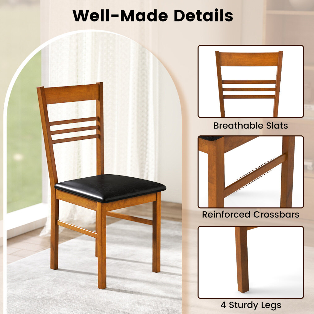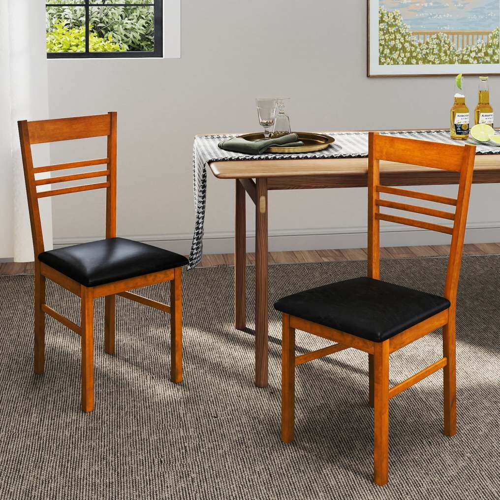 Wood Dining Chairs Set of 2 with Rubber Wood Frame-Walnut