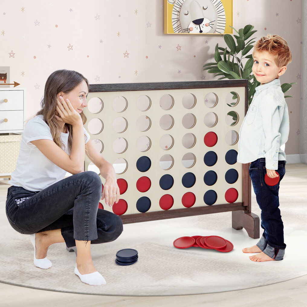 ● Giant 4-in-a-row Game: This giant 4-in-a-row connect game comes with 42 durable PP chips (21 blue + 21 red) for convenient use. What's more, the thickened plywood game board and stable pine wood legs ensure years of enjoyment.