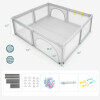 Spacious & Safe Play Zone: With a roomy 81” x 73” x 27” (L x W x H) playpen, your child enjoys a secure area to crawl, stand, and walk freely. Made of wear-resistant Oxford fabric and wrapped entirely in soft cloth with no exposed gaps, it ensures a comfortable and safe play space. The non-slip suction cups at the base keep the playpen stable during active play.