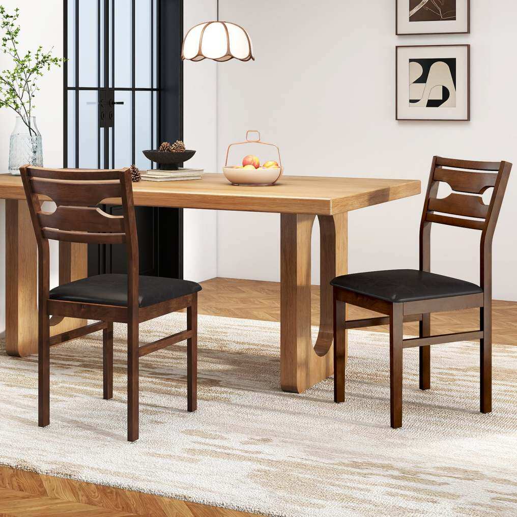 ● Modern Rich Brown Aesthetic: Deep brown wood finish paired with sleek black leather gives these wooden dining chairs a sophisticated, timeless look. These chairs are an excellent addition to your dining room, kitchen, living area, or even a home office.