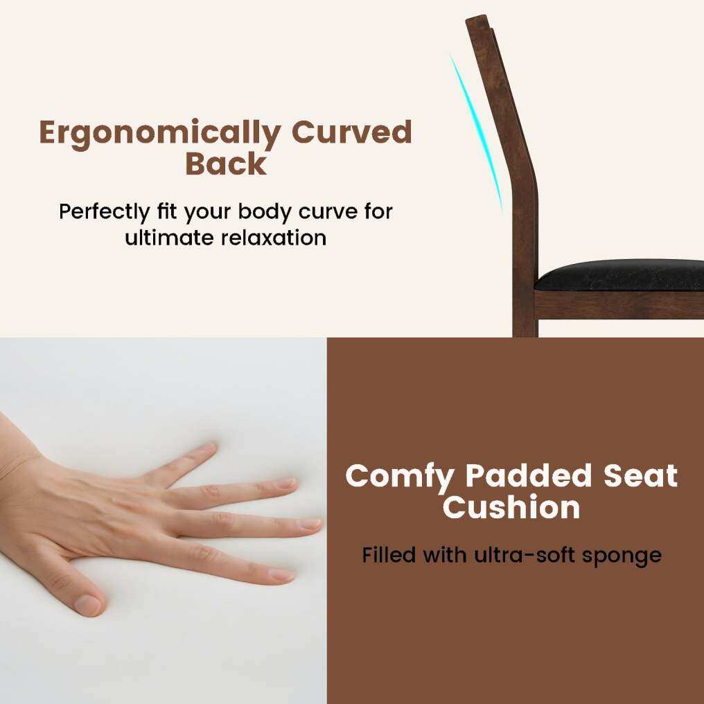 ● Ergonomic Comfort: Each kitchen chair is engineered with a comfy padded seat cushion and an ergonomically curved back, carefully designed to fit the natural curve of your spine. This thoughtful design encourages proper posture and reduces fatigue, ideal for long dinners.