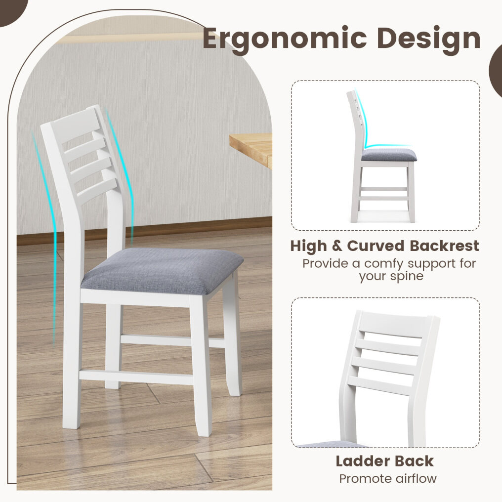 ● Ergonomic Design: The upholstered kitchen chair boasts a high and curved backrest, providing a comfy support for your spine. Additionally, the ladder back design promotes airflow, offering optimal comfort for extended periods of sitting.