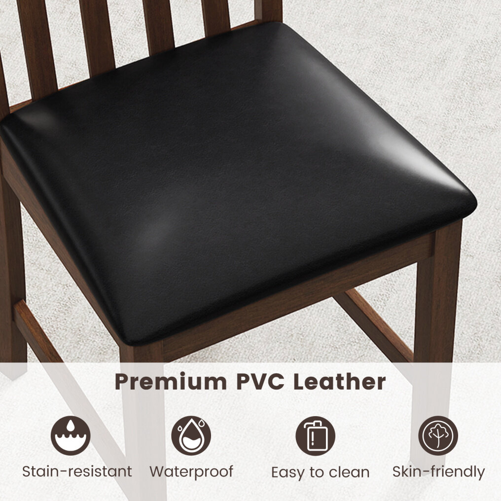 ● Comfortable Seating: Sit back and relax in sheer comfort with these chairs that boast soft sponge-filled cushions covered in premium PVC leather. These materials are not only comfortable but also waterproof and stain-resistant, making cleanup a breeze.