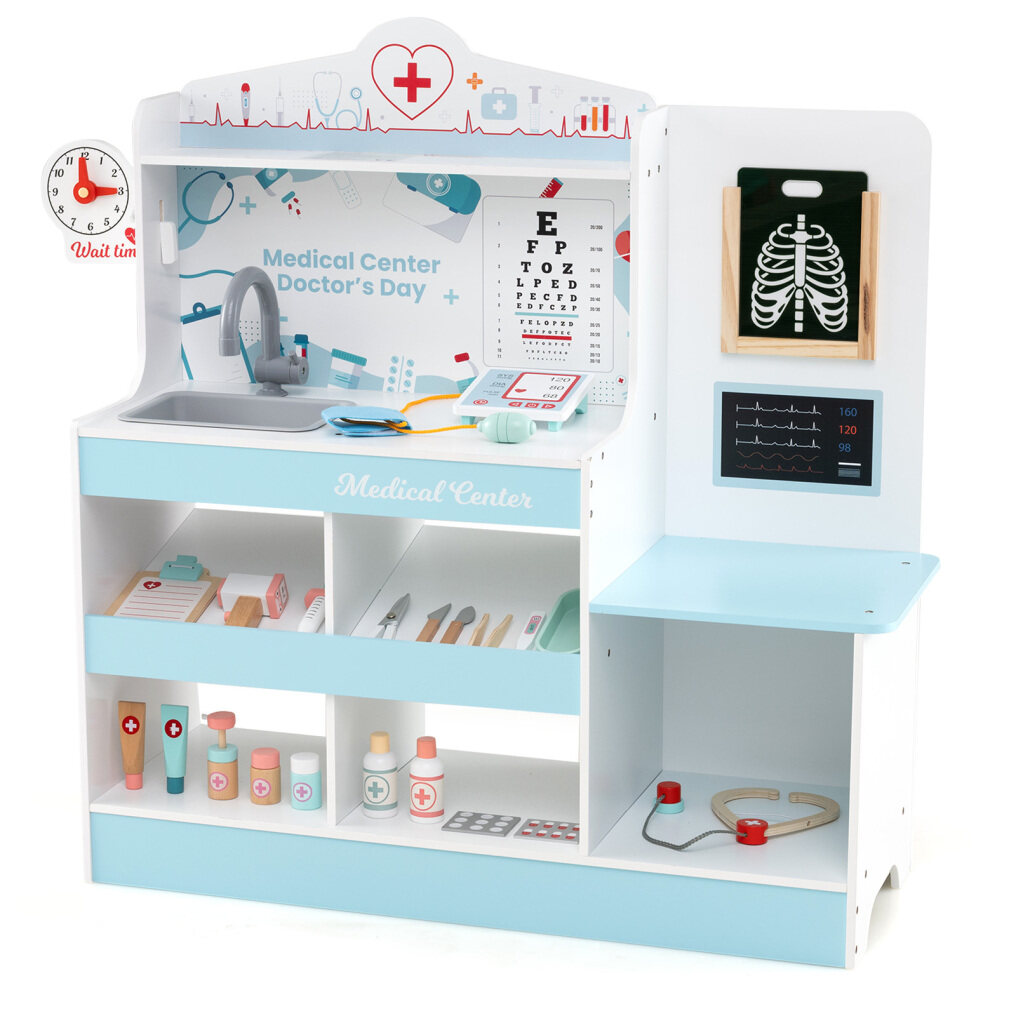 ● Thoughtful Storage Solutions: Designed to keep your play area organized, the pretend doctor's playset features a top shelf, a spacious countertop, 4 open compartments, and bottom shelf that provide ample space for easy access to tools. Plus, the built-in barriers prevent accessories from falling.
