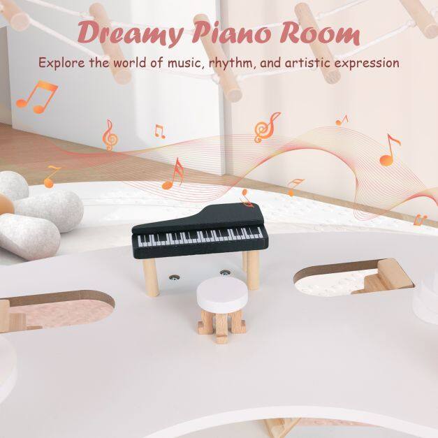 Realistic Room Layout: This wooden dollhouse comes with 33 delightful accessories like a piano, sofa, TV, and staircase, allowing kids to create realistic room layouts and design their dream living spaces.