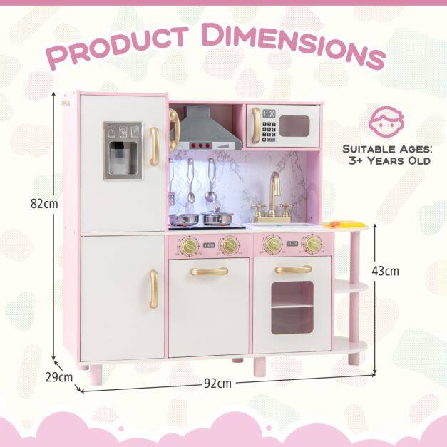 ● Authentic Lights and Sounds: This toy kitchen set features realistic lights and sounds from the range hood and stoves, providing little chefs with an immersive sensory experience during their culinary adventures. Once turned, the knobs will make a "click" sound, adding an extra element of fun.