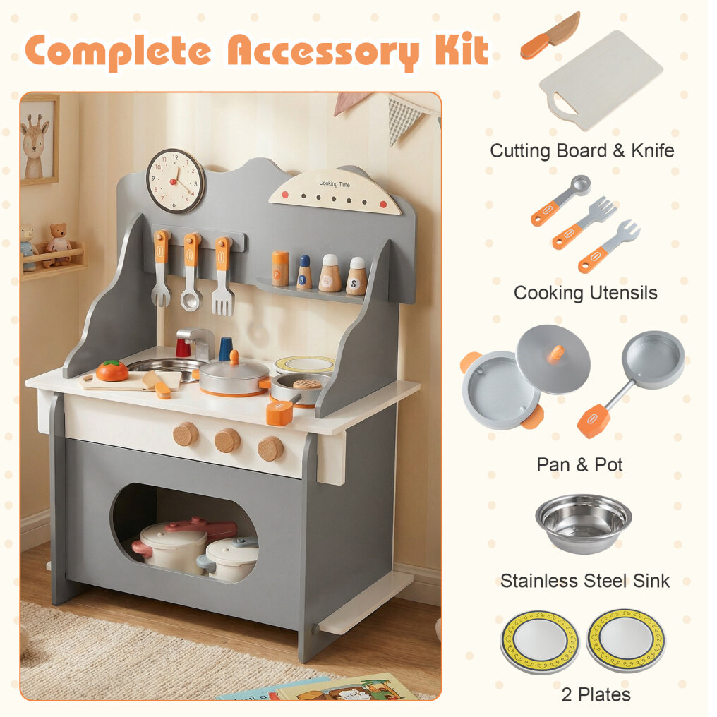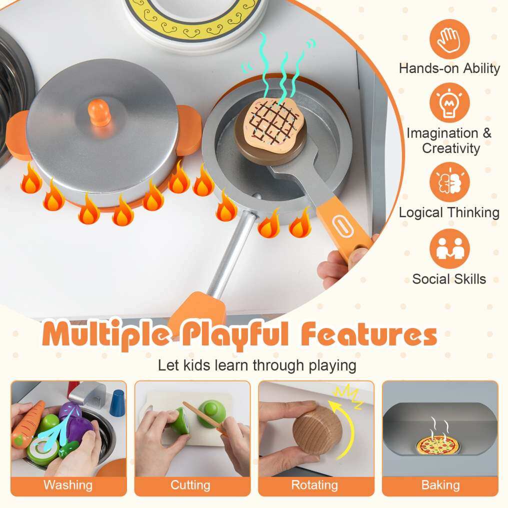 ● Stress-Free Storage: Everything has its place with a top spice rack, spacious countertop, 3 hanging hooks, and lower storage compartment for accessories. Kids learn to keep their play space tidy, building real-life organization skills while having fun.