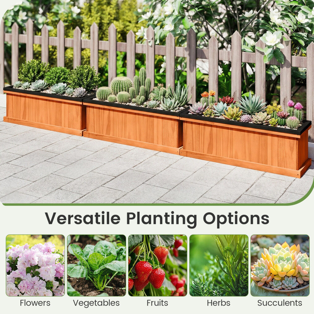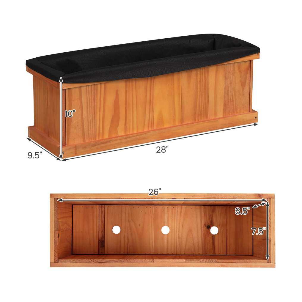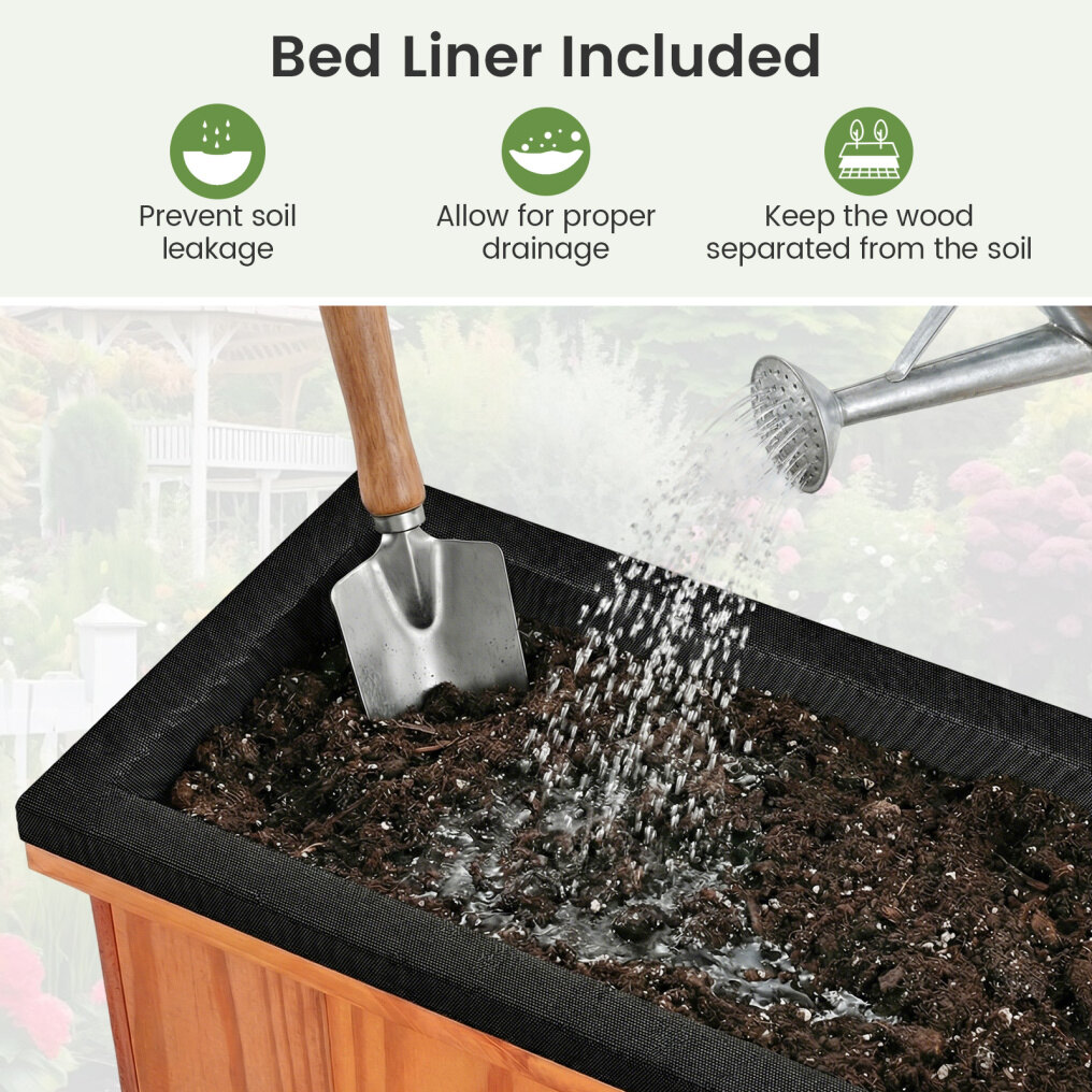 ● Efficient Drainage System: Featuring built-in drainage holes, this flower box ensures optimal water flow to promote healthy root growth. Moreover, bed liner included prevents soil leakage, allows for proper drainage, and keeps the wood separated from the soil.