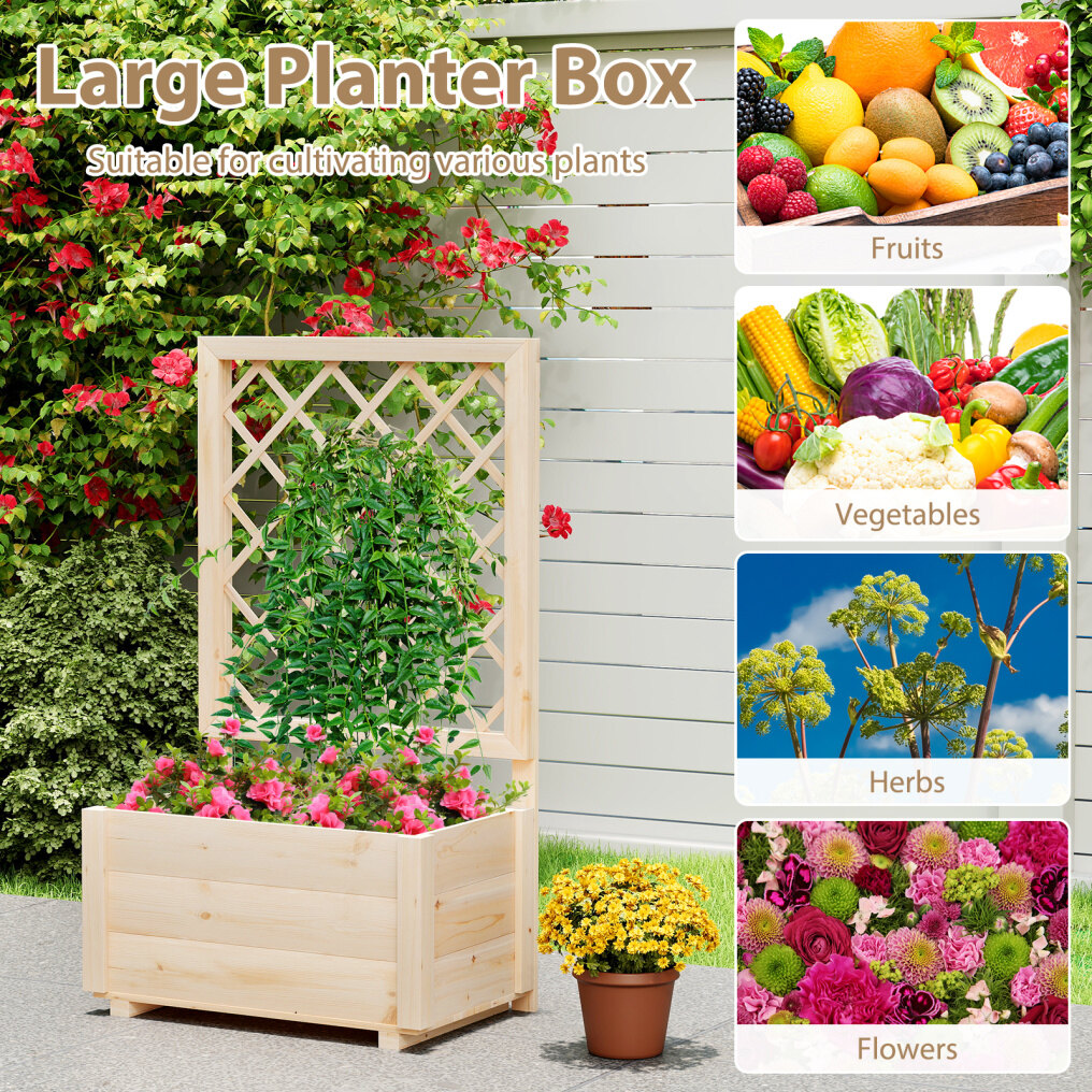 ● Ample Planting Space: The elevated garden bed comes with a large planter box for cultivating fruits, vegetables, flowers, herbs, and more. It also includes a diamond lattice trellis, providing reliable support for climbing plants to thrive while adding a decorative element.