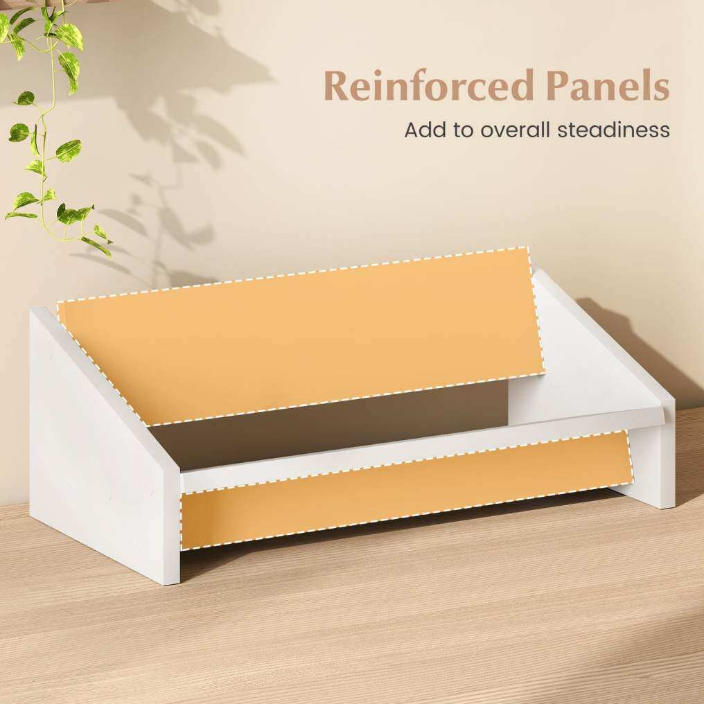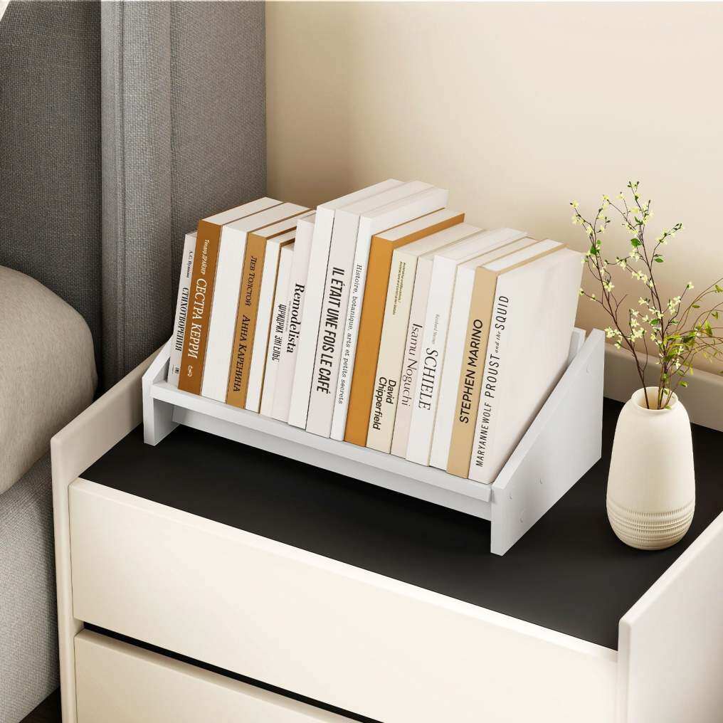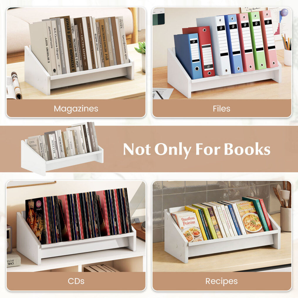 ● Strengthened Construction: Constructed with reinforced panels on the back and bottom, this tabletop book storage rack provides enhanced stability. It effectively minimizes wobbling and reduces the risk of tipping.