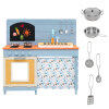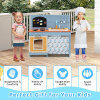 ● Cooking Fun for Little Chefs: The kids play kitchen boasts a chalkboard to write menus, 4 realistic stovetops, 4 rotation knobs that click, and a cutting board for immersive play. Complete with essential cooking tools like a pot, frying pan, spoon, skimmer, and spatula, it is an ideal learning playground for little chefs aged 3-8 years.